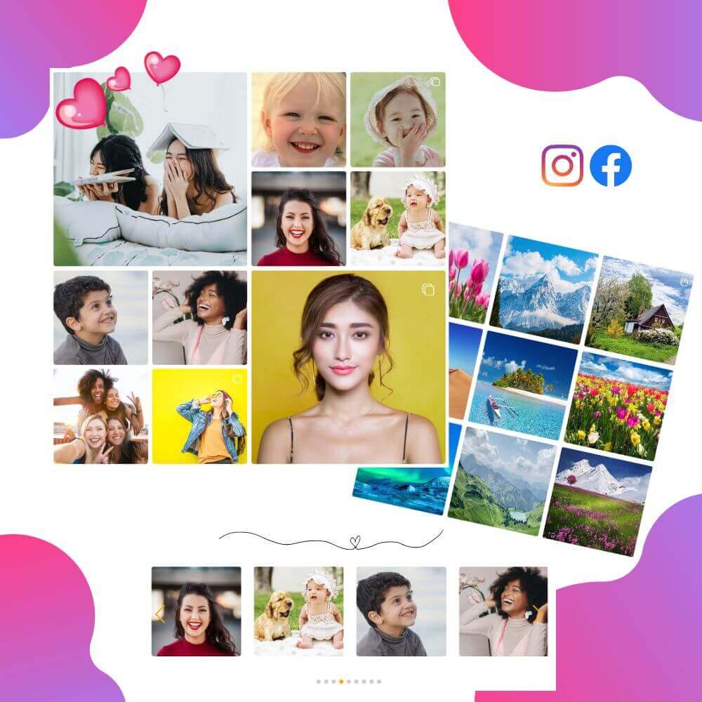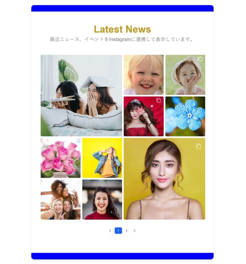 현재 8개의 오리지널 레이아웃으로 SNS피드의 표시 디자인을 자유롭게 설정가능합니다.